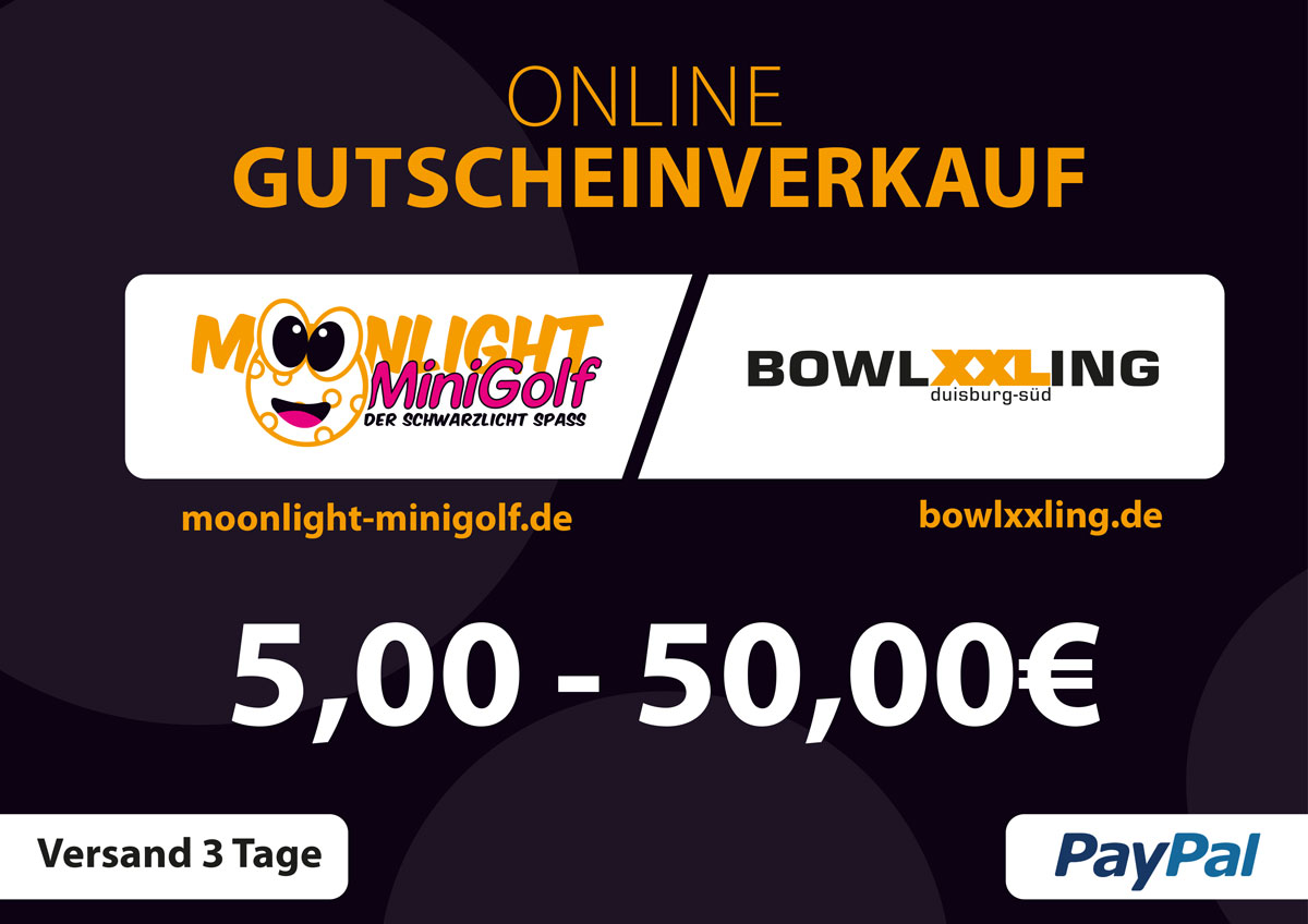 Bowling-Gutscheine im Wert von 5 €, 15 €, 25 € oder 50 € kaufen Sie am besten direkt hier bei uns im Shop!